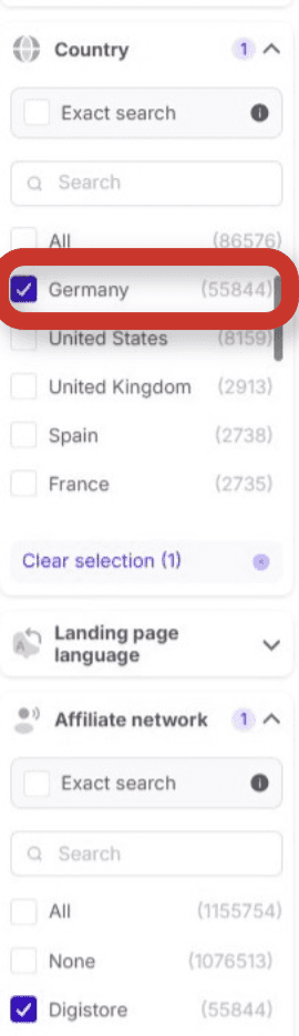 Germany, in particular, has a ton of activity. With a simple country filter, you can switch from US-centric offers to international ones and instantly see what’s trending overseas.