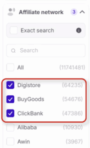 Start with the affiliate network filter