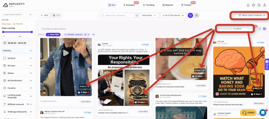 Inside Adplexity Social, you can get a clear view of the hottest offers and the creatives, affiliates are pushing at scale. I walked through the entire process in the video above, but here’s the written version so you can follow it step by step.