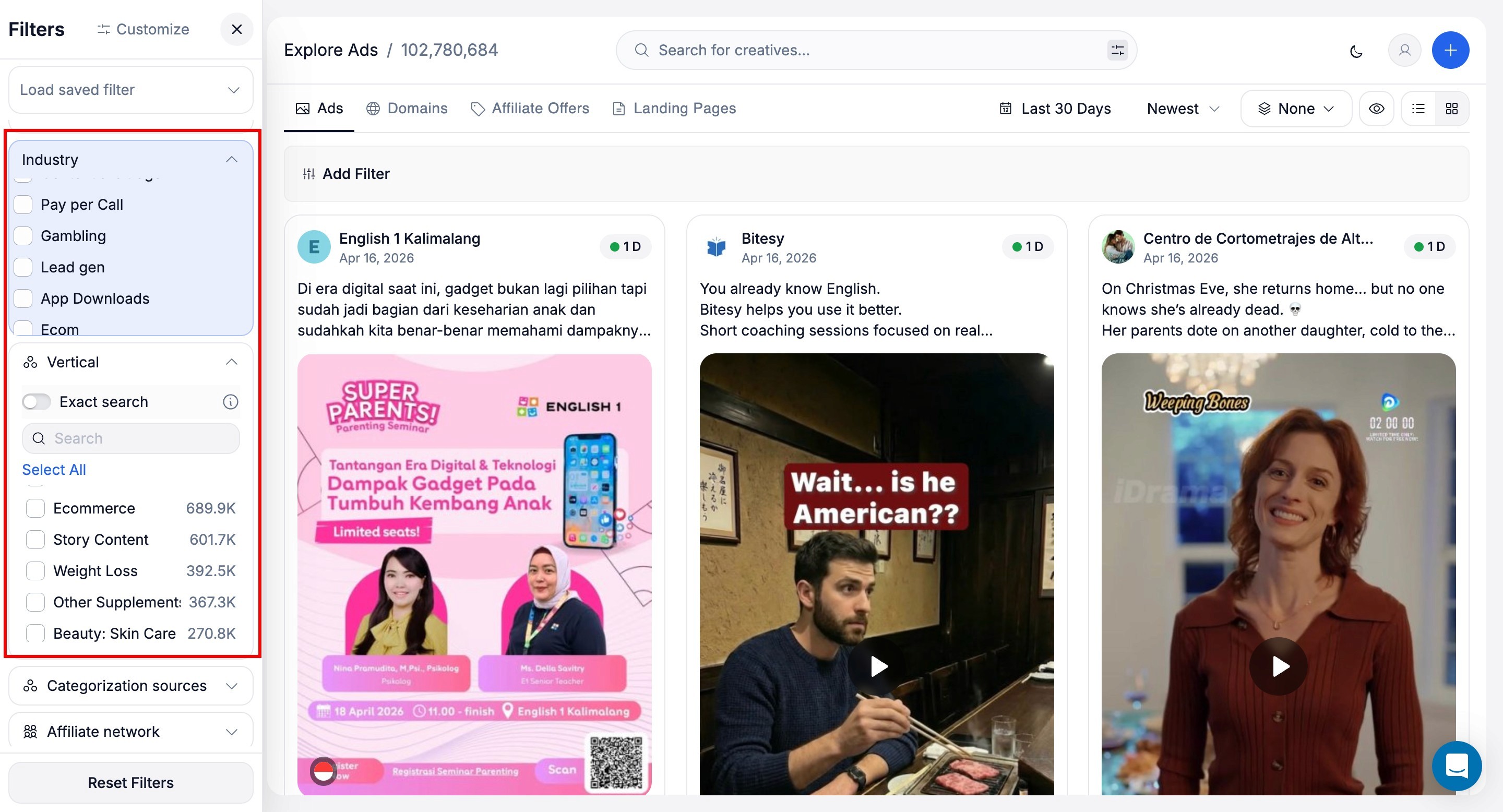 This lets you skip past generic creatives and go straight to advertisers running structured lead gen funnels in your vertical.