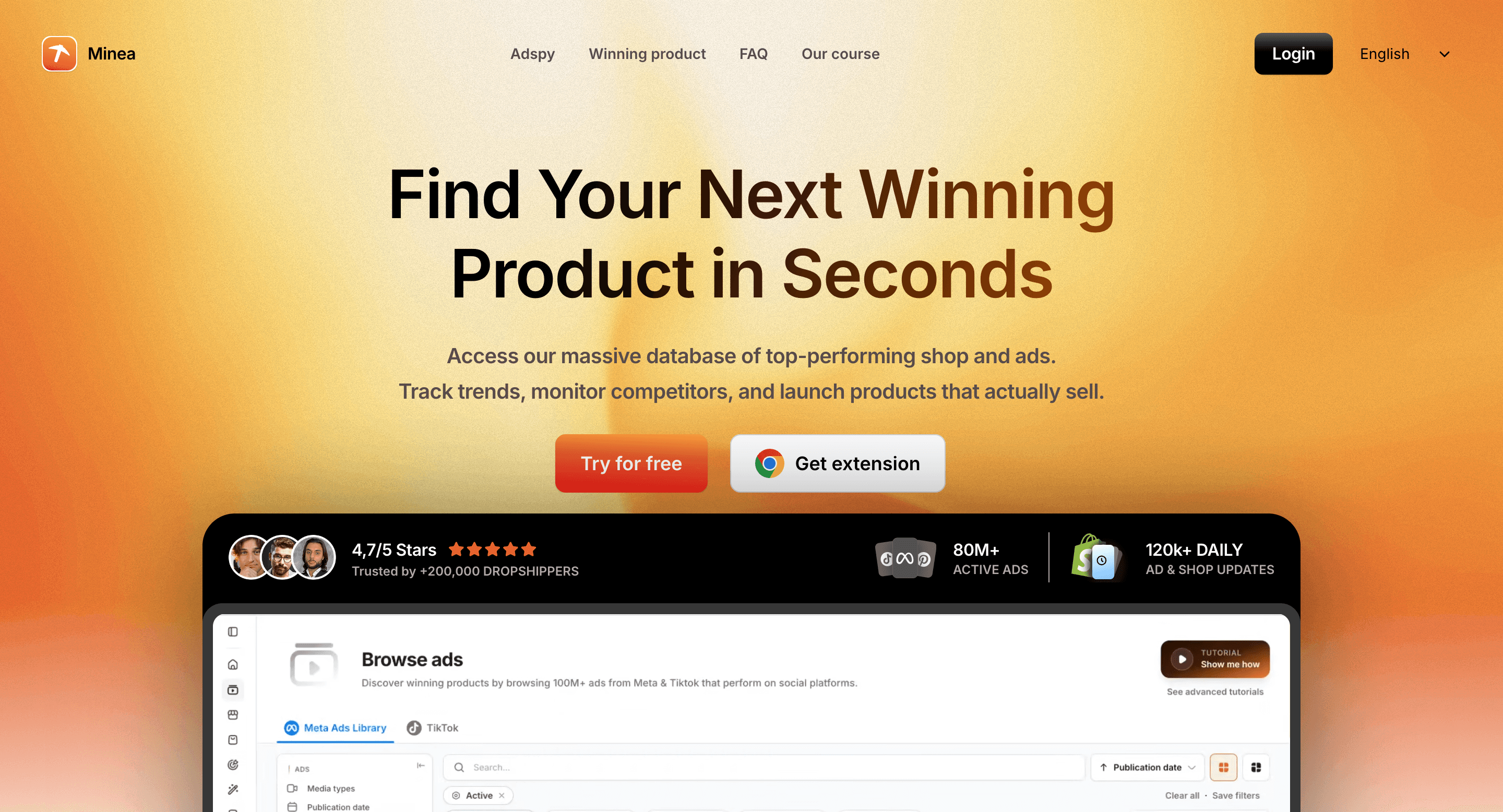 6. Minea — Best for Ecommerce and Dropshipping