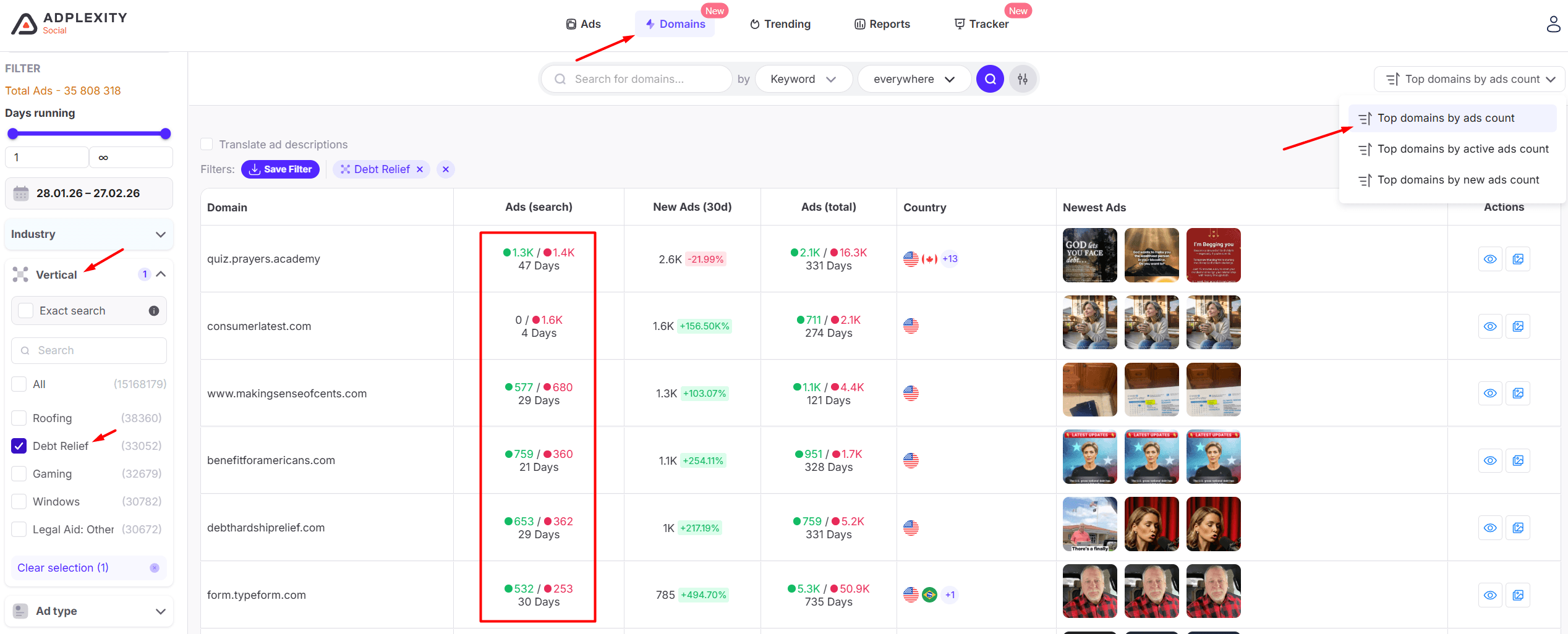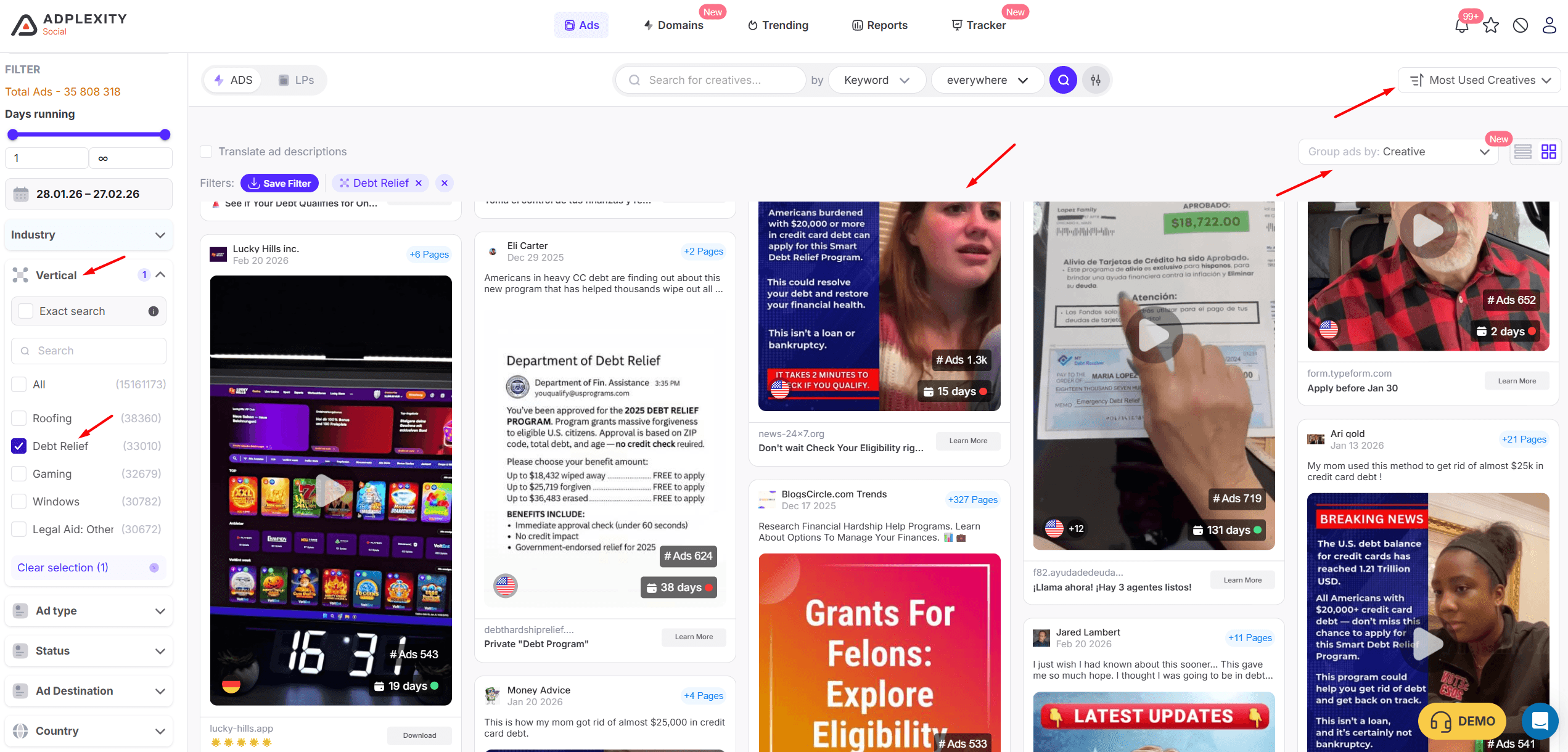 If you want to explore the debt relief vertical — or any other niche —AdPlexity Social gives you the full picture.