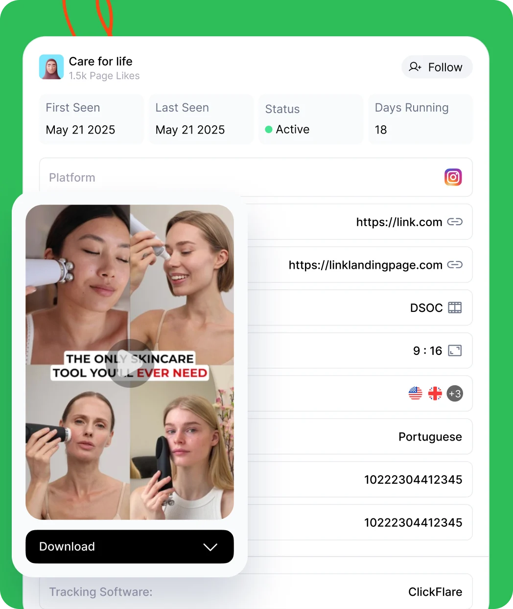 One creative can drive to multiple landing pages. See every variation, compare performance, and steal the best converting one.