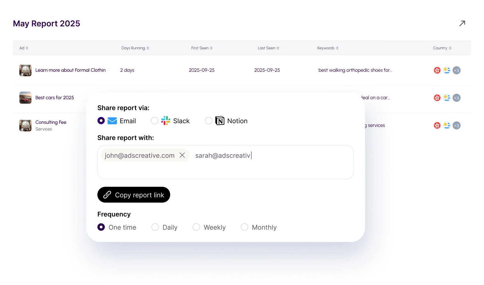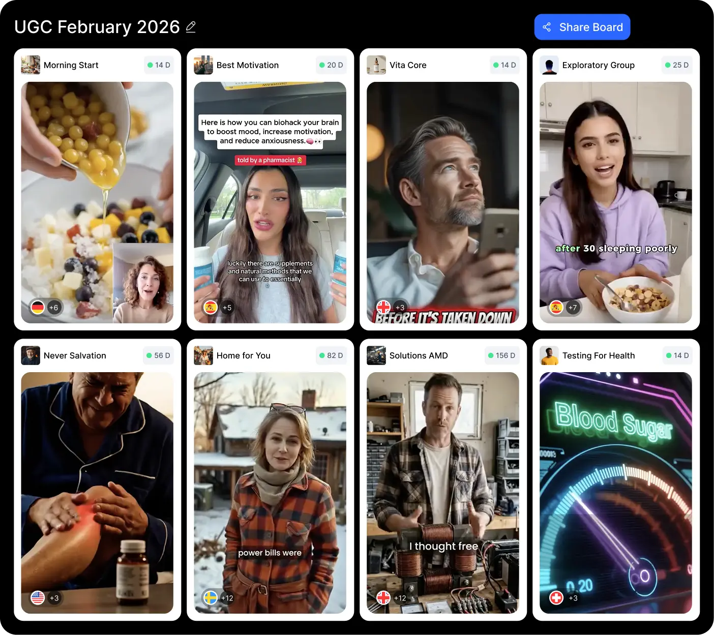 Create unlimited boards to organize ads by campaign, client, or angle.